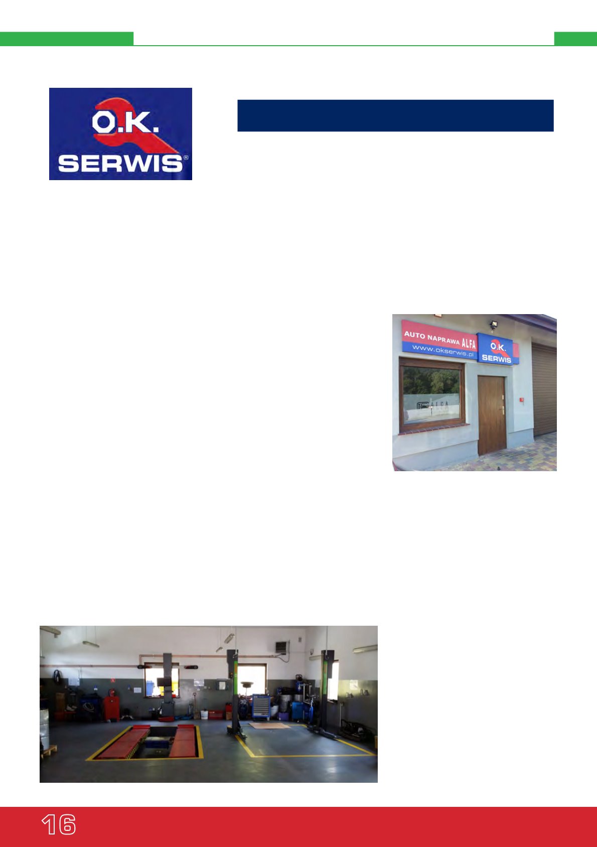 sko 16 lat dokładamy wszelkich starań, aby szyld O.K. Serwis umieszczony na elewacji warsztatu, był